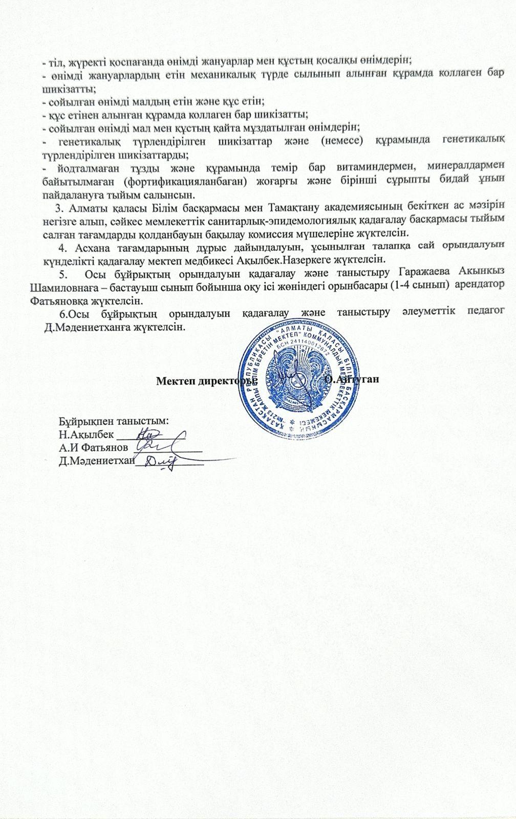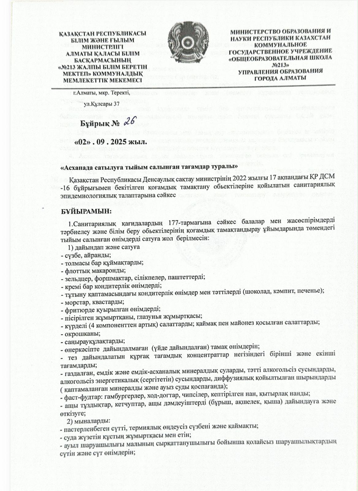 Асханадағы сатылуға тыйым салынған тағамдар туралы » «№213 жалпы білім беретін мектеп»