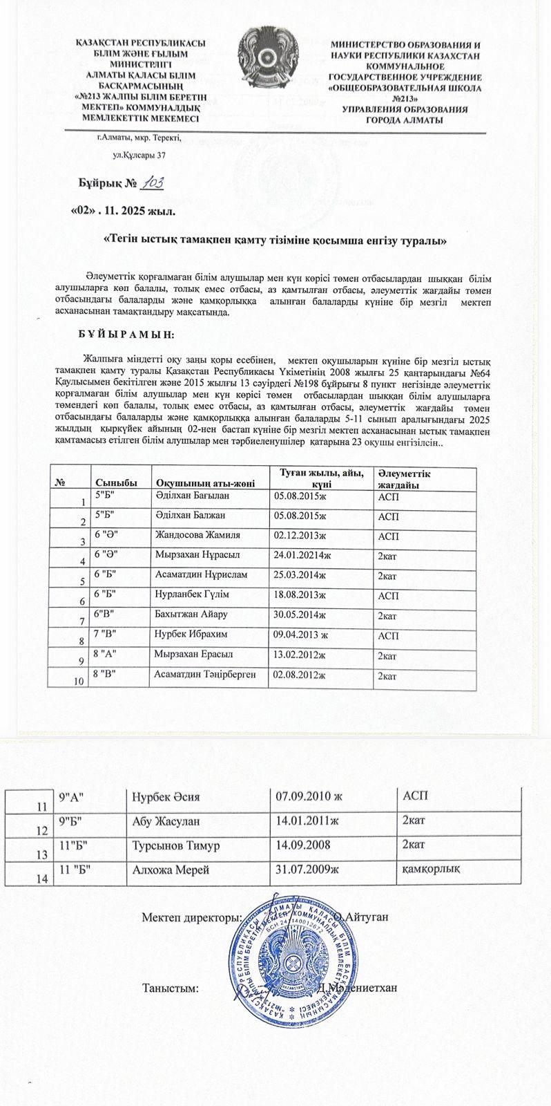 ыстық тамақпен қамтыу туралы » «№213 жалпы білім беретін мектеп»