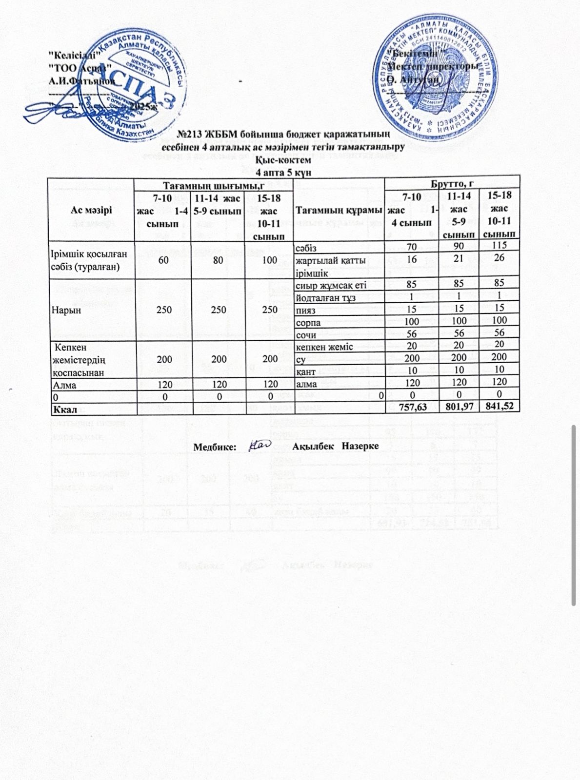 Ас мәзірі 4-апта 5-күн » «№213 жалпы білім беретін мектеп»