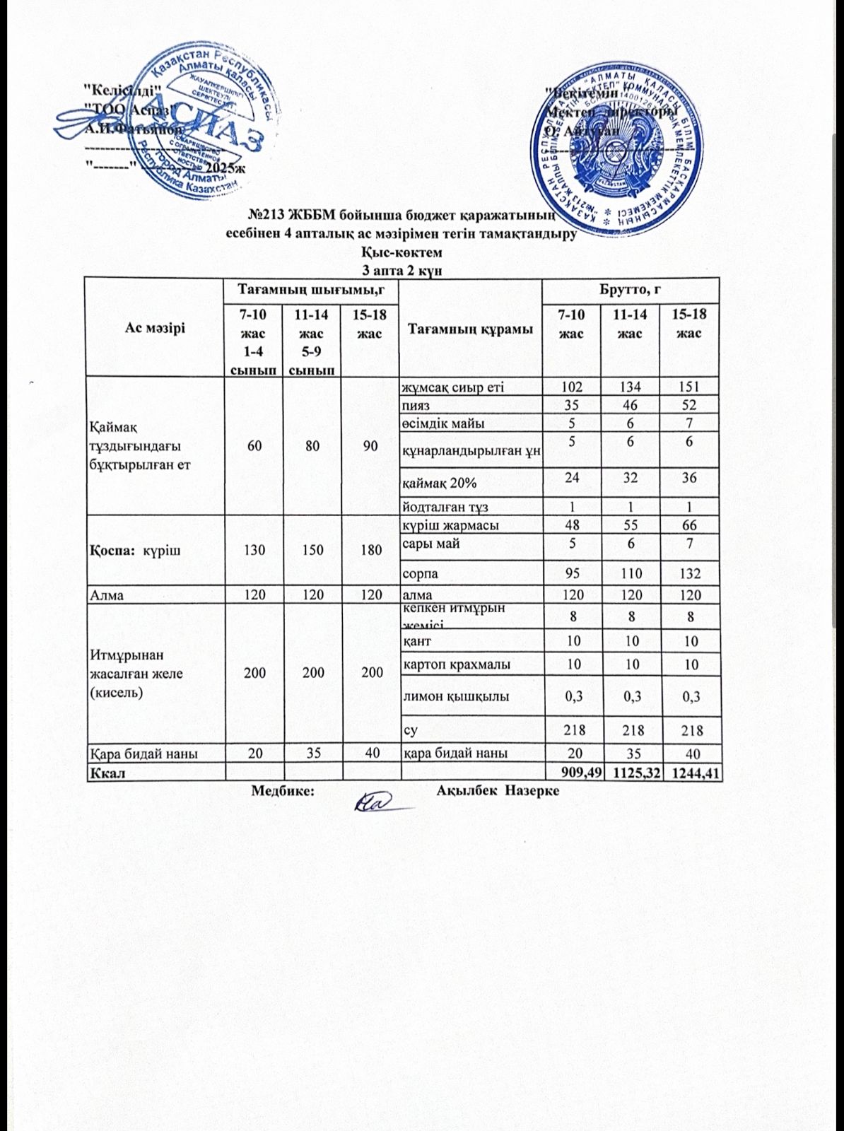 18 қыркүйек 2025 Ас мәзірі 3-апта 4-күн
