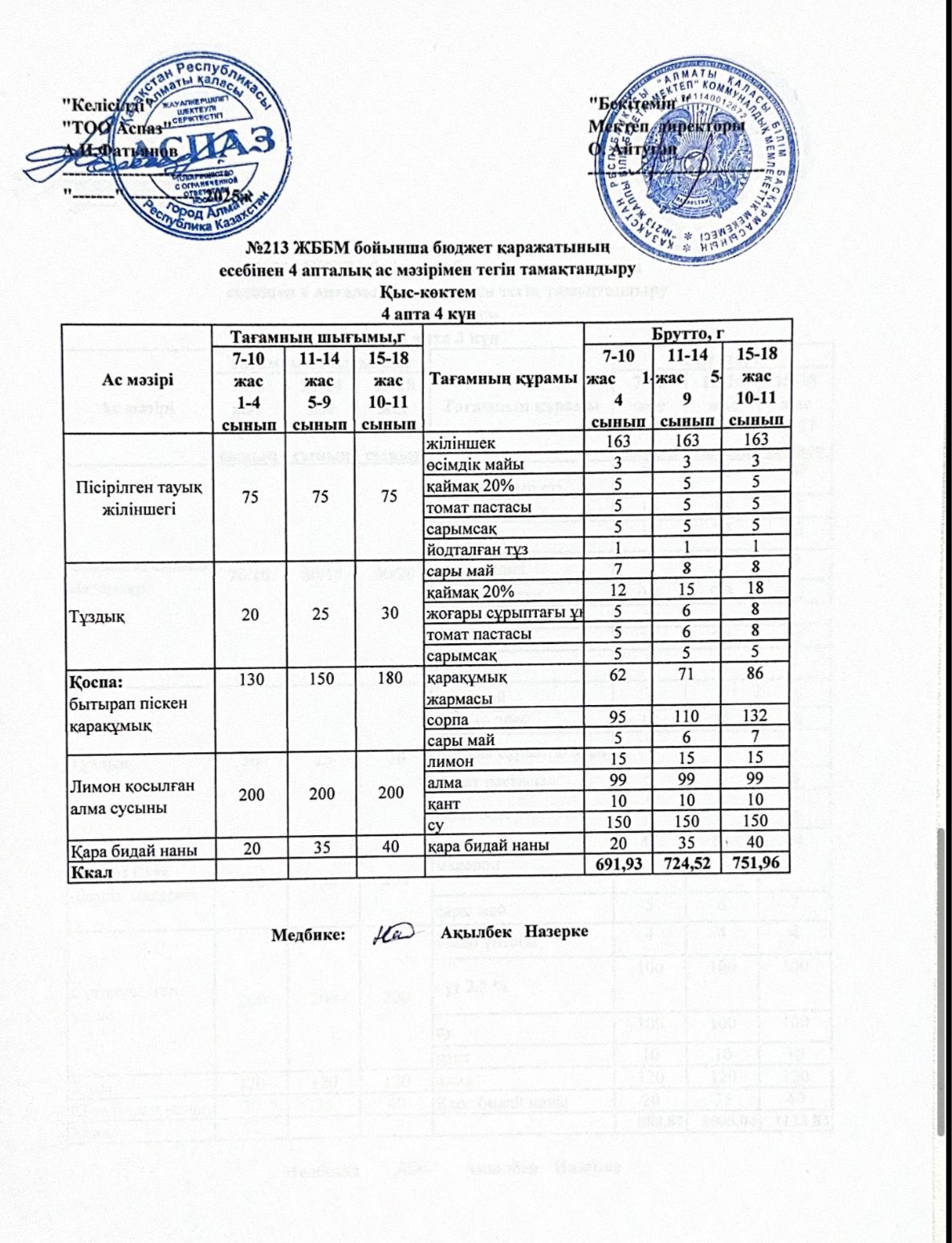 Ас мәзірі 4-апта 4-күн » «№213 жалпы білім беретін мектеп»