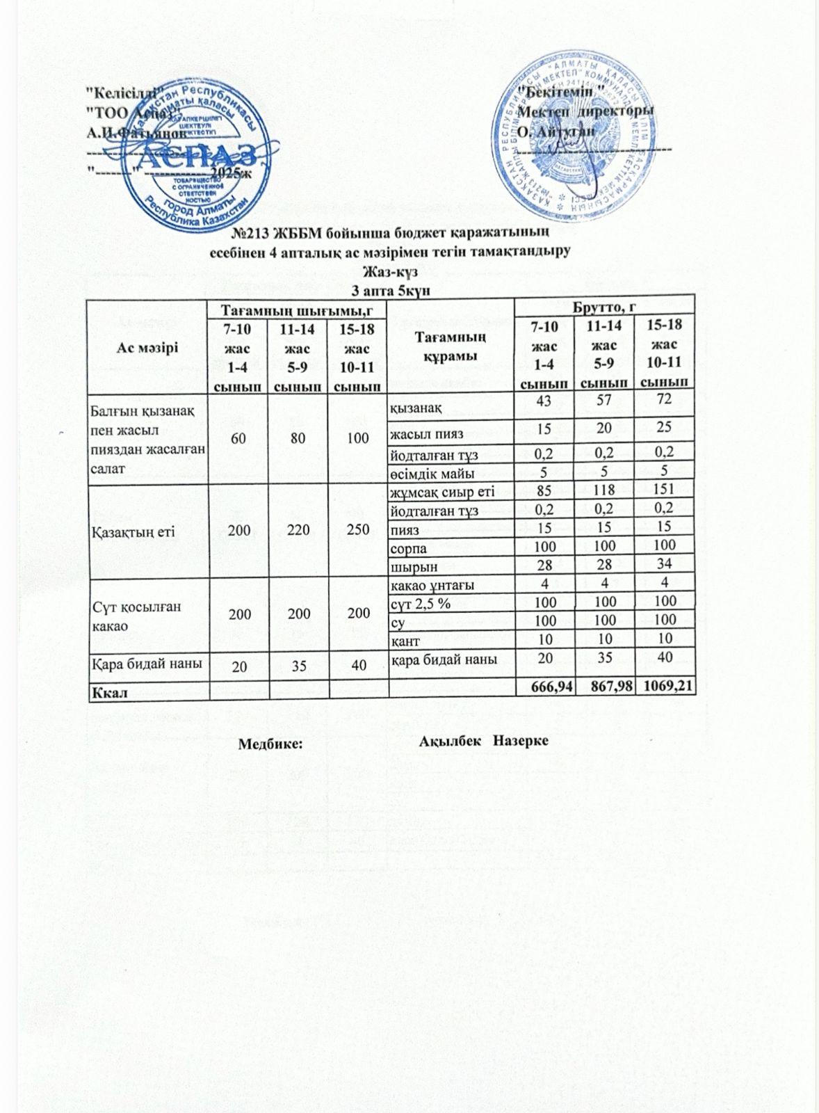 Ас мәзірі 3-апта 5-күн » «№213 жалпы білім беретін мектеп»