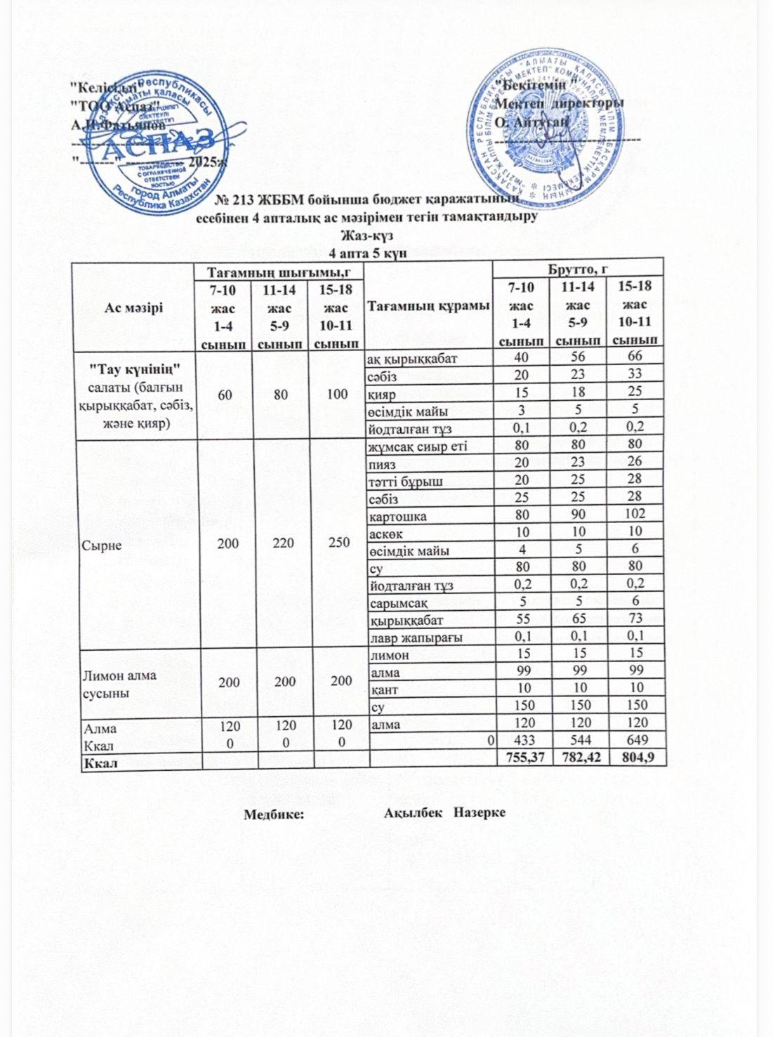 Ас мәзірі 4-апта 5-күн » «№213 жалпы білім беретін мектеп»