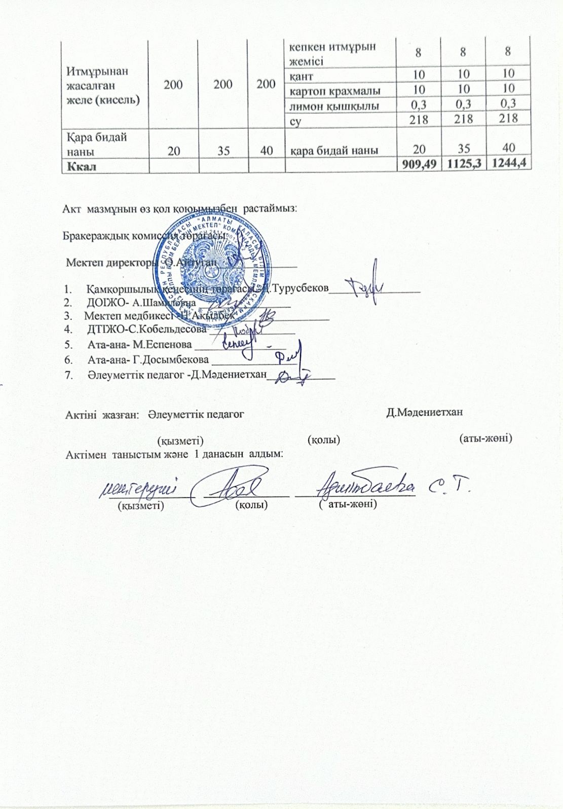 Мектеп асханасын тексеру туралы АКТ » «№213 жалпы білім беретін мектеп»